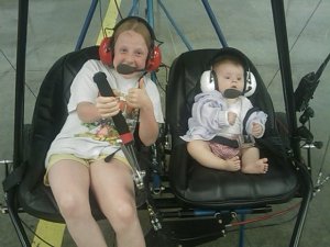 I took a picture of my daughters enjoying the dreaming of flying. Ok, one of them is, the other was just sitting in the seat looking at the new surroundings.